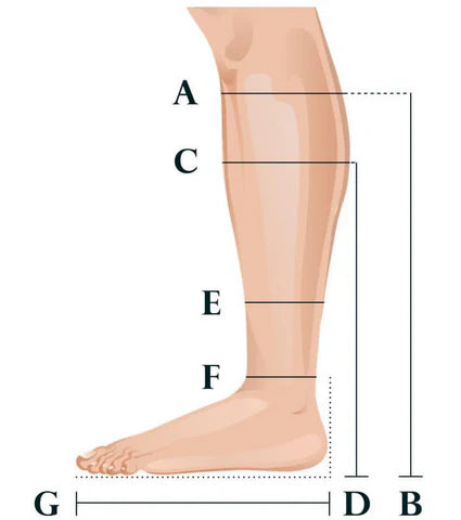 A) Take the measurement around the top of the calf, and this will be the top of your boot. Choose where you would like this to be. Normally 2cm below the small bone located on the outside of the leg just below the knee. Mark this point with a pen.
